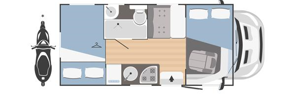 - Schlafplätze: Bis zu 4 Personen (inkl. Alkoven) - Querbett hinten