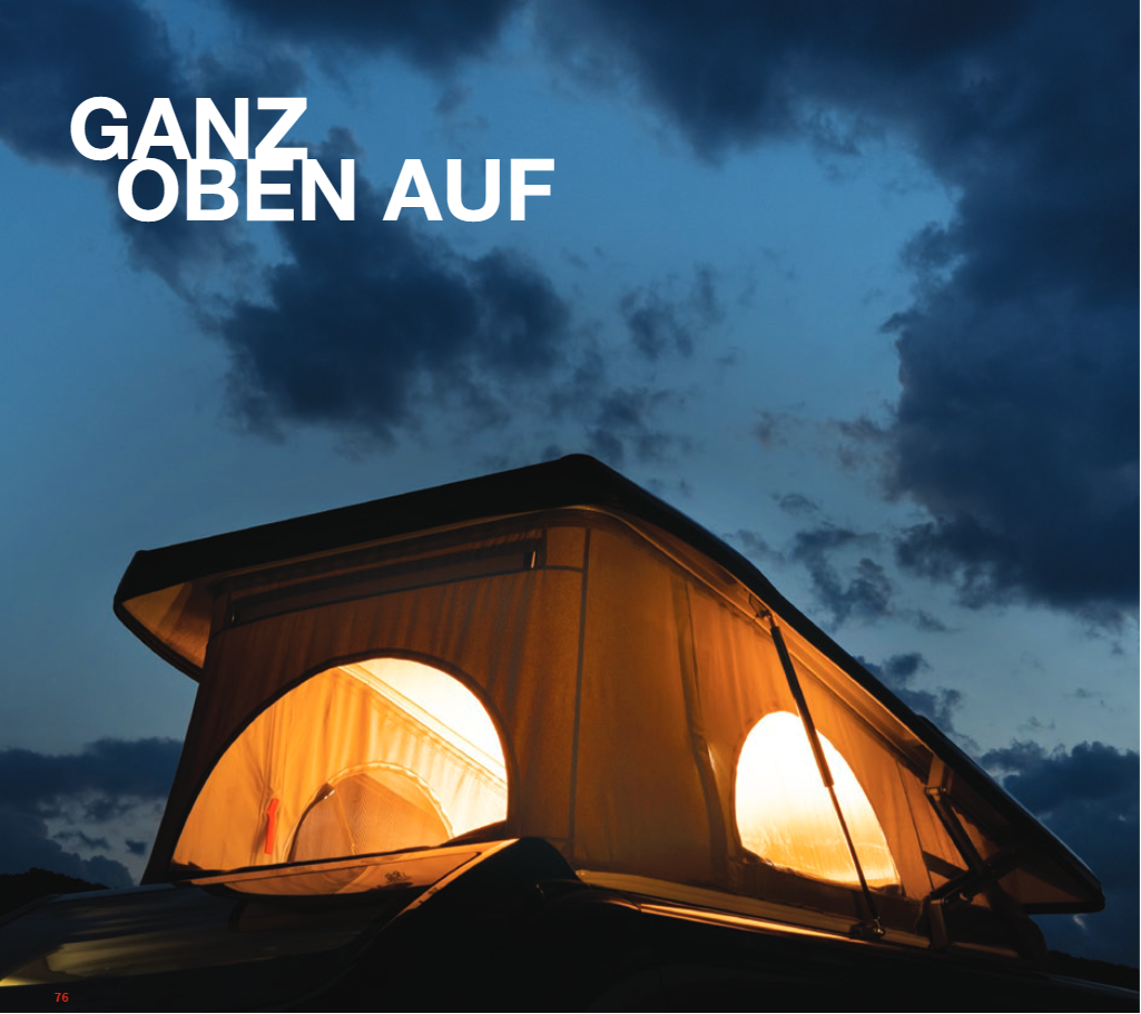 DasAufstelldach eröffnet eine Welt der Freiheit und bietet atemberaubende Panoramablicke. Das Längsbett verspricht nicht nur persönlichen Schlafkomfort, sondern kann mühelos zu einer grosszügigen Liegewiese umgewandelt werden.